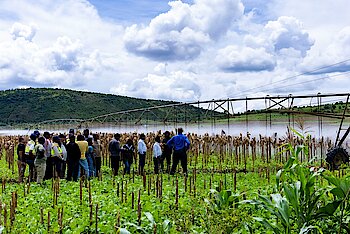 Minisitiri uw’ubuhinzi n’ubworozi Dr. Telesphore Ndabamenye n’uw’Ibikorwaremezo Dr. Jimmy Gasore basuye imirimo y'umushinga wo gutunganya ibyanya…