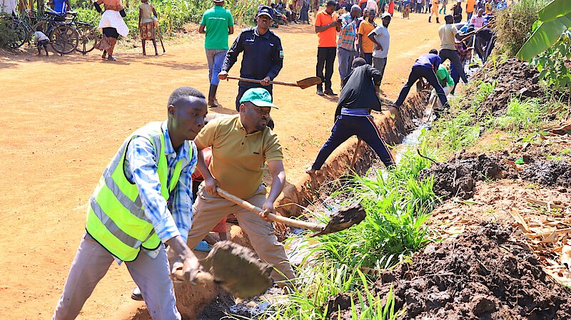 I Nasho mu Kagari ka Cyambwe hakorewe umuganda udasanzwe wo kubungabunga icyanya cyuhirwa, hatunganywa imirwanyasuri kuri uyu wa Gatandatu tariki 30 Kanama 2025. Ni umuganda udasanzwe witabiriwe n'abarimo Umuyobozi w'Akarere Bwana Rangira Bruno, ari kumwe n'umuyobozi w'Akarere wungirije ushinzwe iterambere ry'ubukungu Bwana Nzirabatinya Modeste, inzego z'umutekano, bifatanyije n'abaturage mu Murenge wa Nasho, Akagari ka Cyambwe mu muganda bakoze mu rwego rwo kubungabunga icyanya cyuhirwa batunganya imirwanyasuri n'imiyoboro ifata amazi.