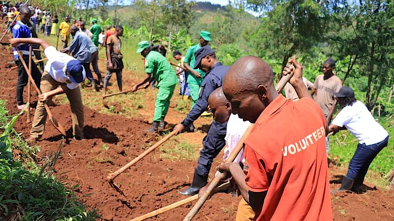 Kuri uyu wa Gatandatu tariki 26/04/2025 mu Karere ka Kirehe abaturage bitabiriye igikorwa cy'umuganda rusange usoza ukwezi kwa Mata 2025, wibanze ku bikorwa byo gusana imihanda mu rwego rwo kurwanya isuri, gusibura inzira z’amazi no gucukura ibinogo biyafata. Ni umuganda wakorewe mu midugudu yose igize Akarere ariko Ubuyobozi bw’Akarere bukaba bwagiye buhitamo aho bwifatanya n’abaturage. gr1