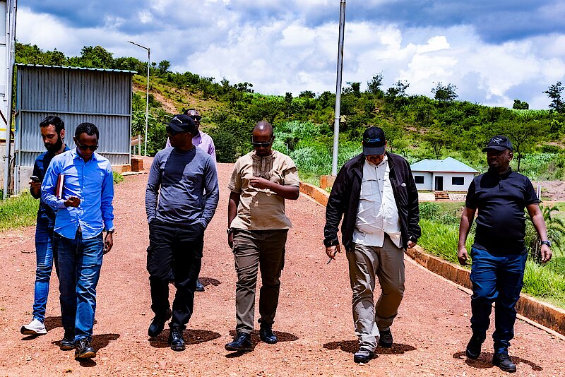 Minisitiri uw’ubuhinzi n’ubworozi Dr. Telesphore Ndabamenye n’uw’Ibikorwaremezo Dr. Jimmy Gasore basuye imirimo y'umushinga wo gutunganya ibyanya byuhirwa ya ETI (Export Targeted Modern Irrigation Projects), iri kubakwa mu bice by’imirenge ya Nyamugari, Mahama na Mpanga bareba aho imirimo igeze, banatanga inama z’ibyanozwa kugira ngo iyi mishanga igirire abaturage akamaro.