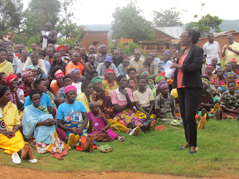 Asura abaturage b’Utugari twa Gasarabwayi, Kabuga na Nganda mu Murenge wa Musaza Umunyamabanga wa Leta Dr. Mukabaramba Alvera yabibukije gukurikiza amategeko abagenga nkuko bari kubikangurirwa muri gahunda y’icyumweru cyahariwe ubufasha buhabwa abaturage mu by’amategeko.
